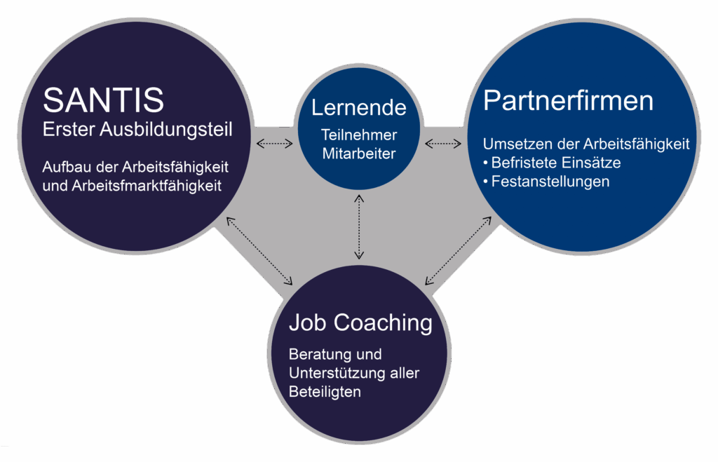 - Ein Job Coach begleitet die Lernenden sowie den Einsatzbetrieb während des Praktikums bzw. Arbeitsversuchs. Er coacht und unterstützt, wo immer nötig.